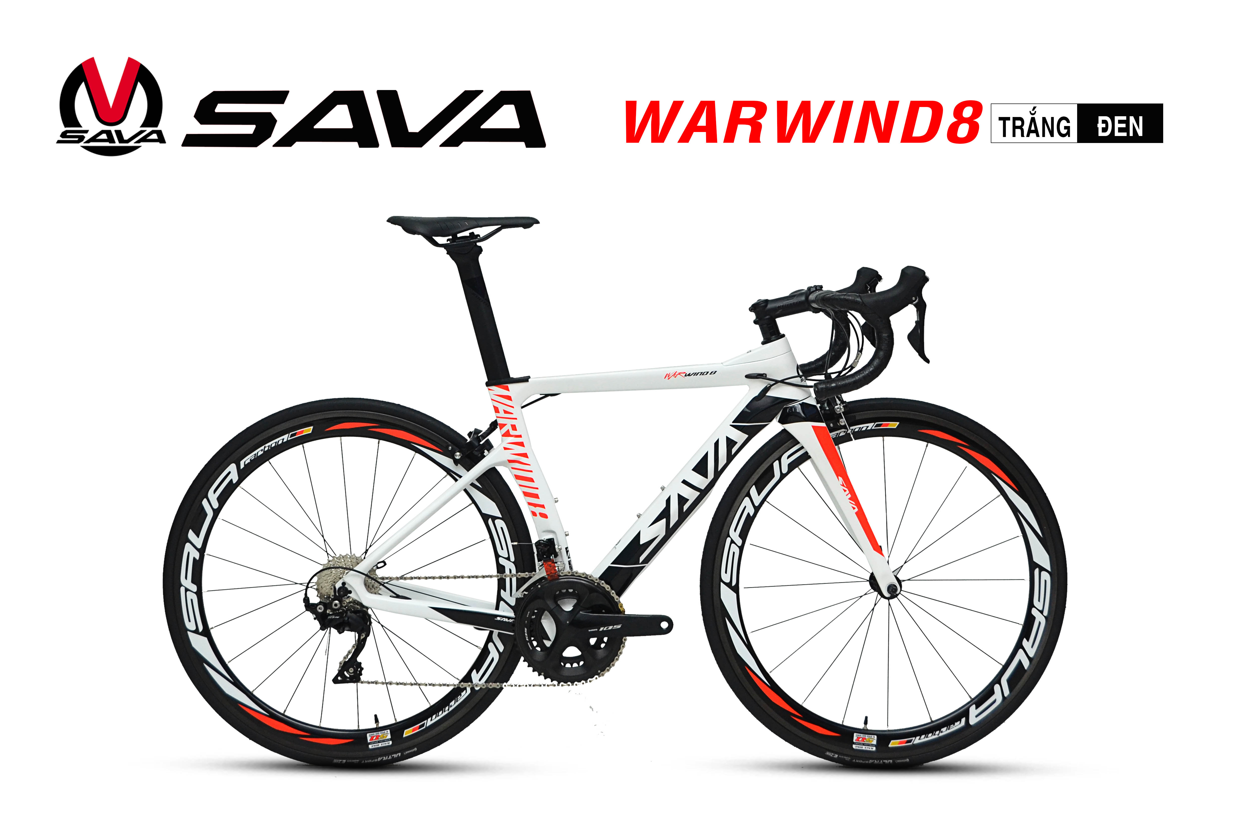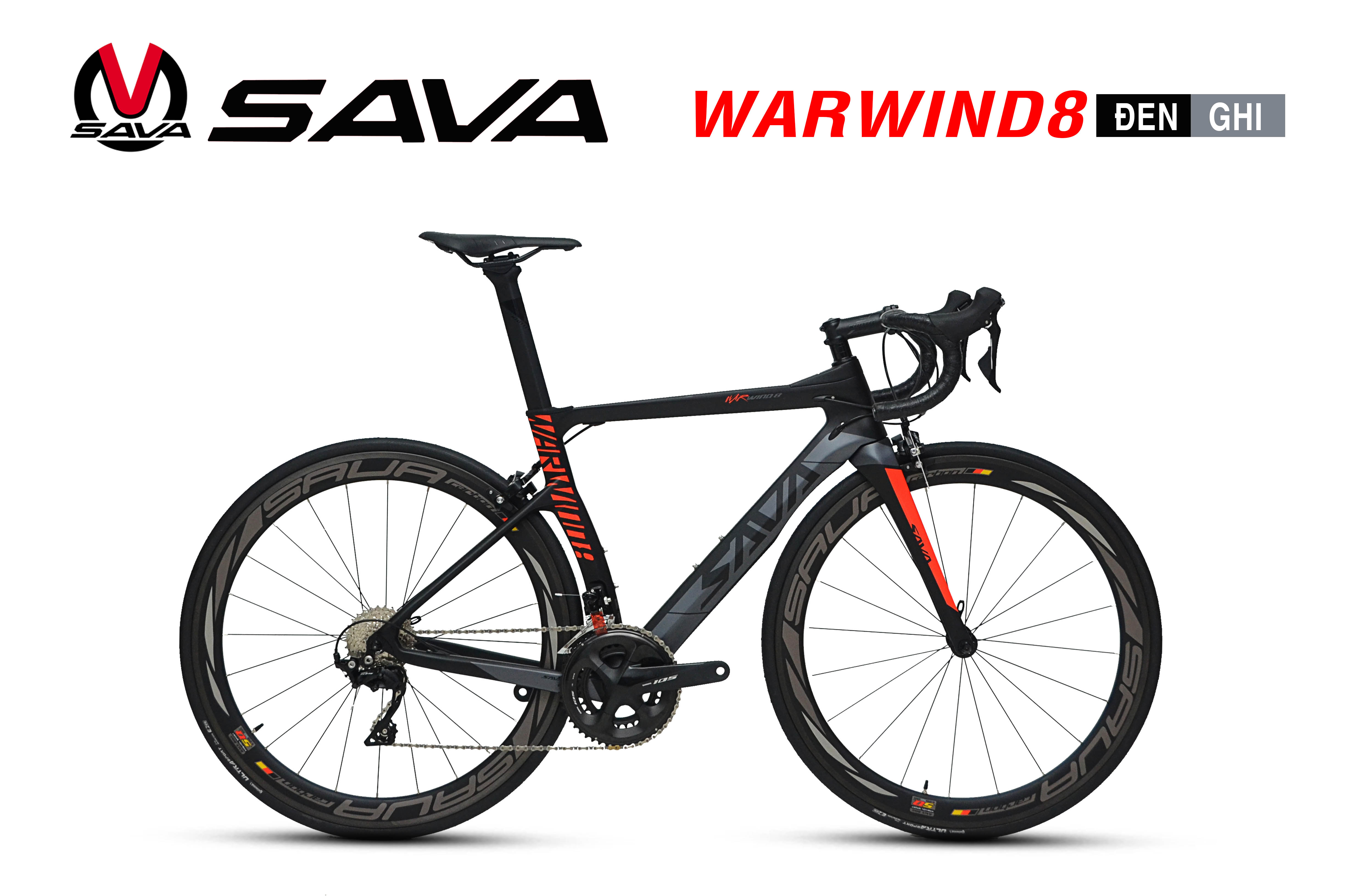 Cấu hình full carbon, full Shimano 105R7000 LUÔN ĐƯỢC ƯA CHUỘNG NHẤT Tại việt nam - và cũng là mẫu xe làm mưa làm gió trên thị trường xe đạp đua hơn 8 năm qua của sava, GIỜ ĐƯỢC tiếp nối với SAVA Warwind8 - TIẾNG VIỆT có thể gọi là Phong chiến 8 - thực sự là chiến mã nhanh như gió.